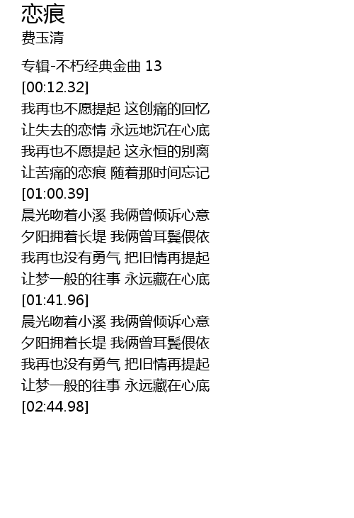 | [02:31.81] | 让梦一般的往事 永远藏在心底 |