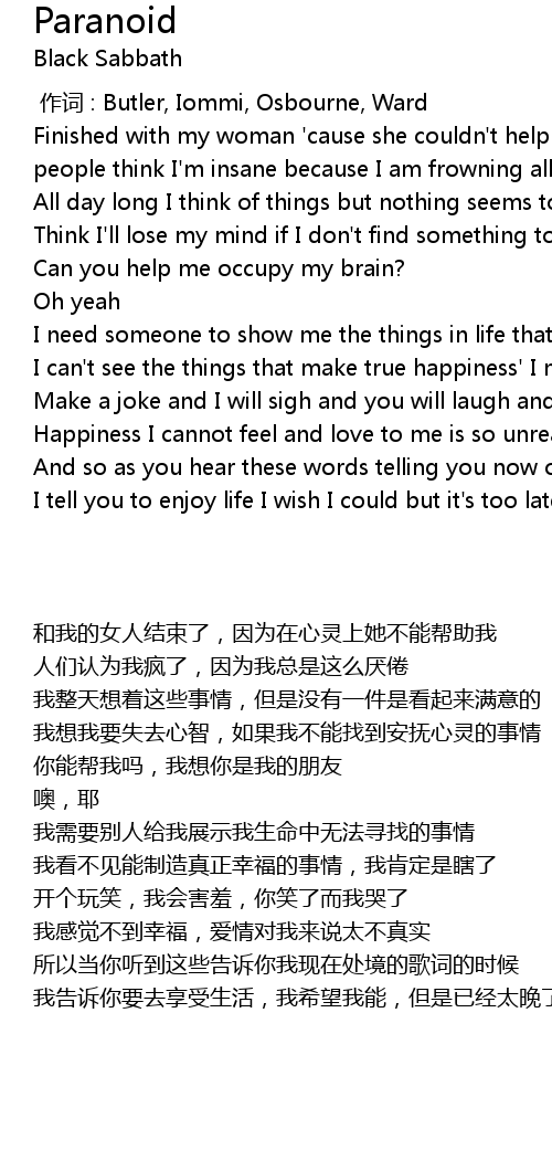 | 歌曲 | Paranoid |
