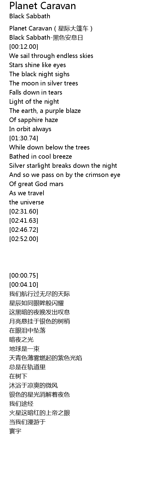 | [00:00.75] | Planet Caravan(星际大篷车) |