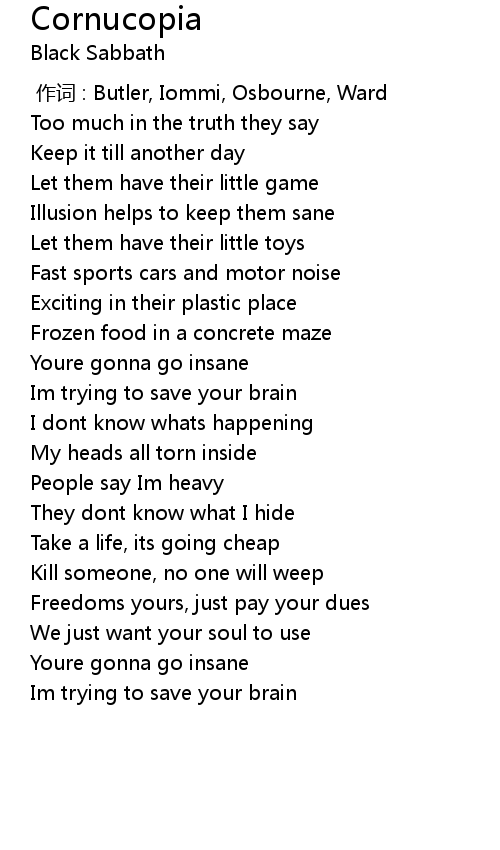 | [00:00.00] | 作词 : Butler, Iommi, Osbourne, Ward |