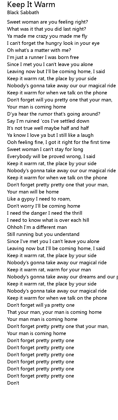 Keep it warm rat, the place by your side |
