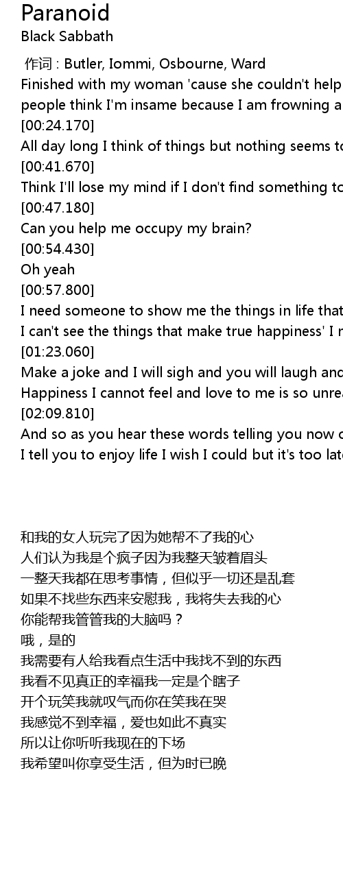 | [00:00.00] | 作词 : Butler, Iommi, Osbourne, Ward |