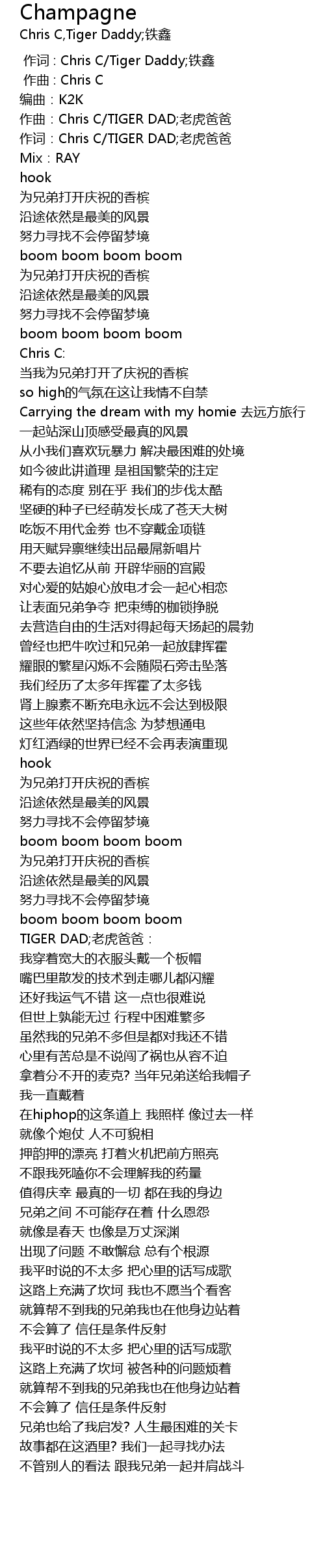 | [00:00.000] | 作词 : Chris C/Tiger Daddy;铁鑫 |