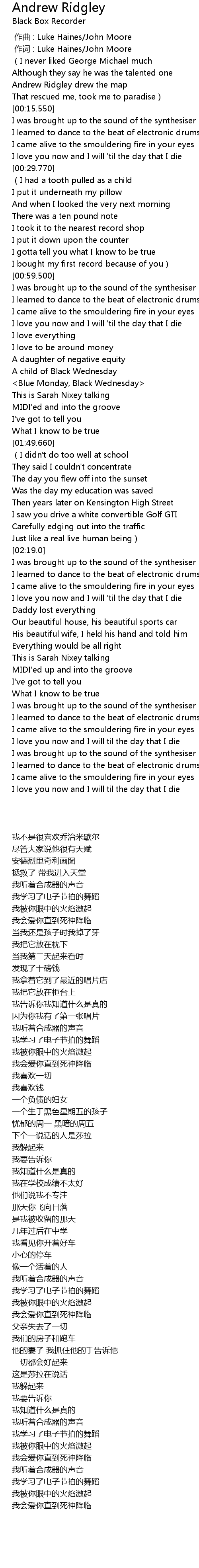 | [00:00.166] | zuò cí : Luke Haines John Moore |
