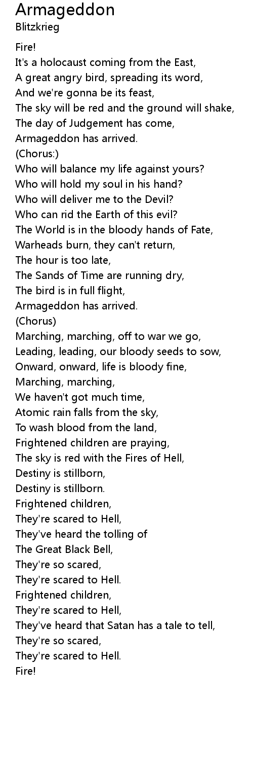 The sky is red with the Fires of Hell, |