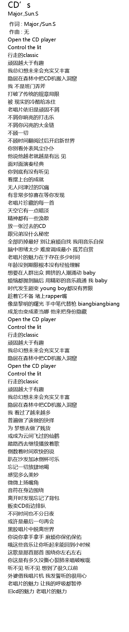| [00:00.000] | 作词 : Major./Sun.S |