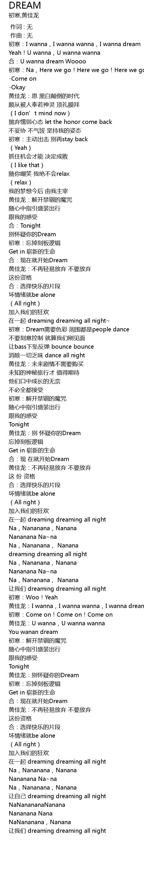 | [02:19.207] | huang jia long: I wanna, I wanna wanna, I wanna dream |
