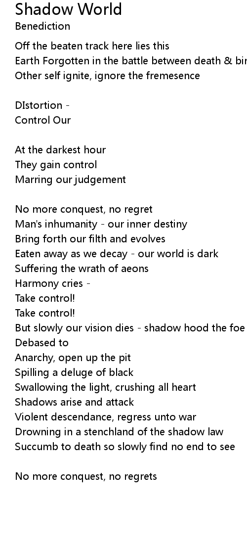 But slowly our vision dies - shadow hood the foe |