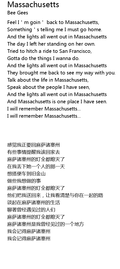 | 歌曲 | Massachusetts |