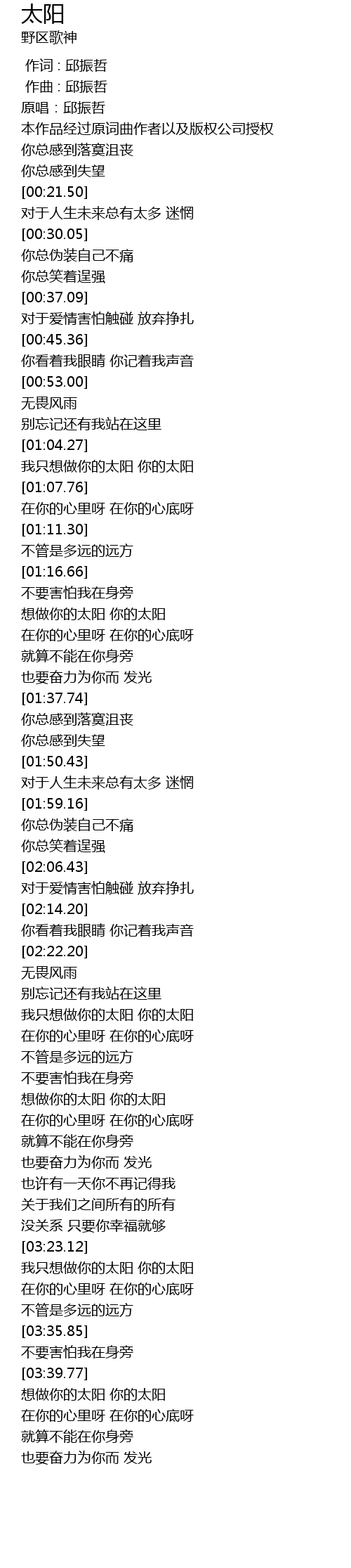| [00:00.000] | 作词 : 邱振哲 |