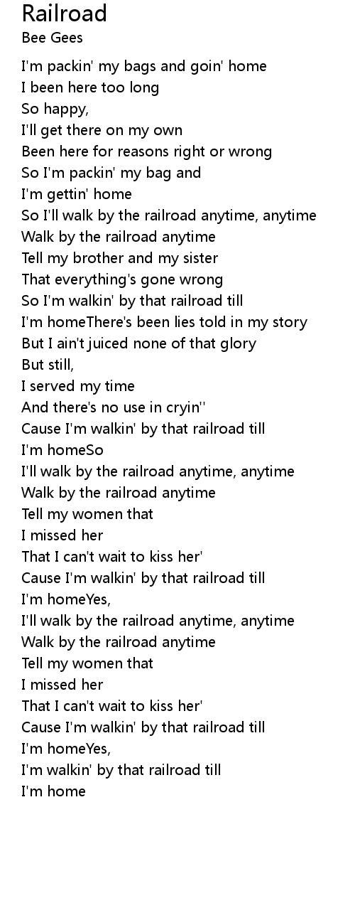| So I'll walk by the railroad anytime, anytime | |