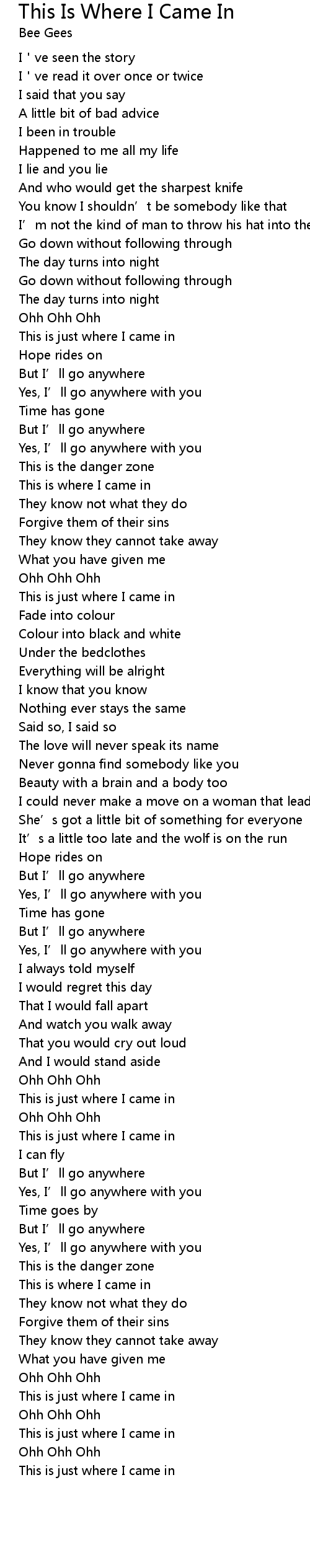 | 歌曲 | This Is Where I Came In |