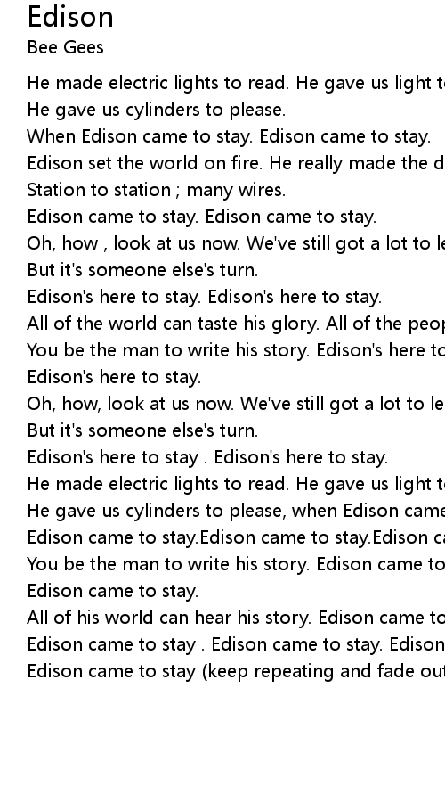 | Edison came to stay (keep repeating and fade out ) |