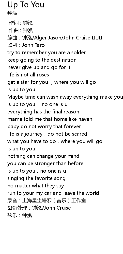 | [00:57.000] | is up to you , no one is u |