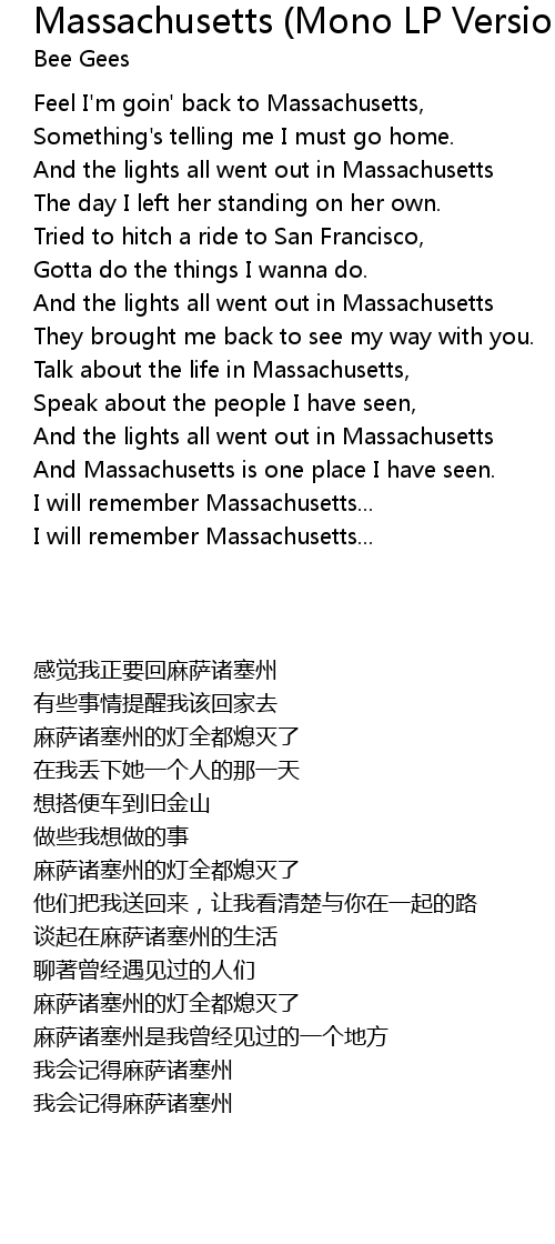 Feel I'm goin' back to Massachusetts, |