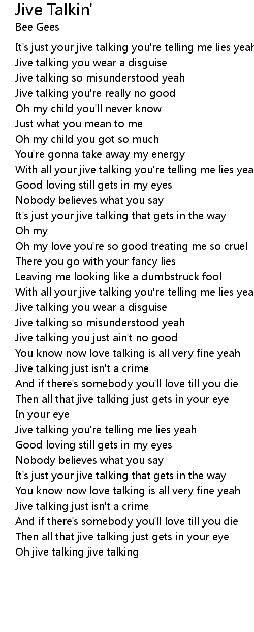 Jive talking so misunderstood yeah |