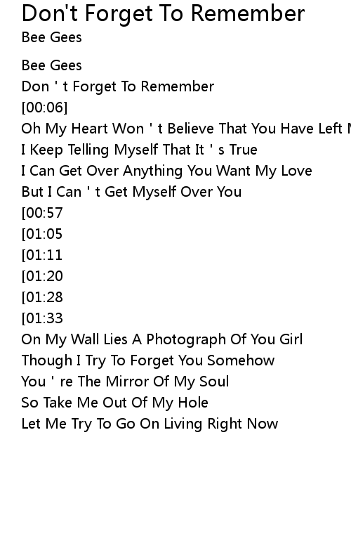 | [03:04][01:33] | Don t Forget To Remember Me My Love |