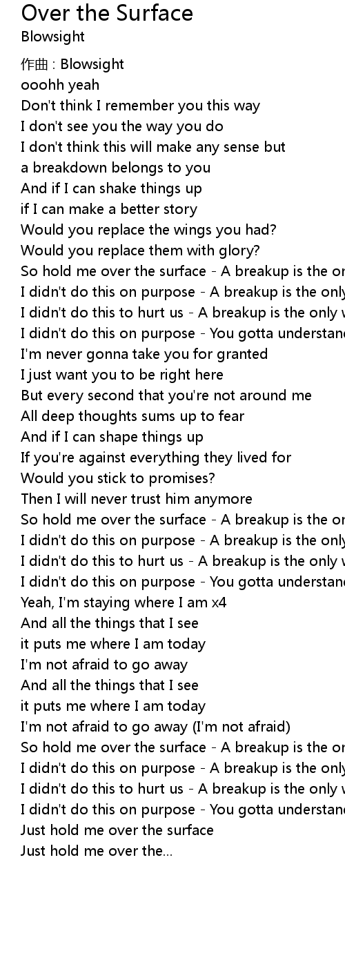 | So hold me over the surface A breakup is the only way to lose it all | |