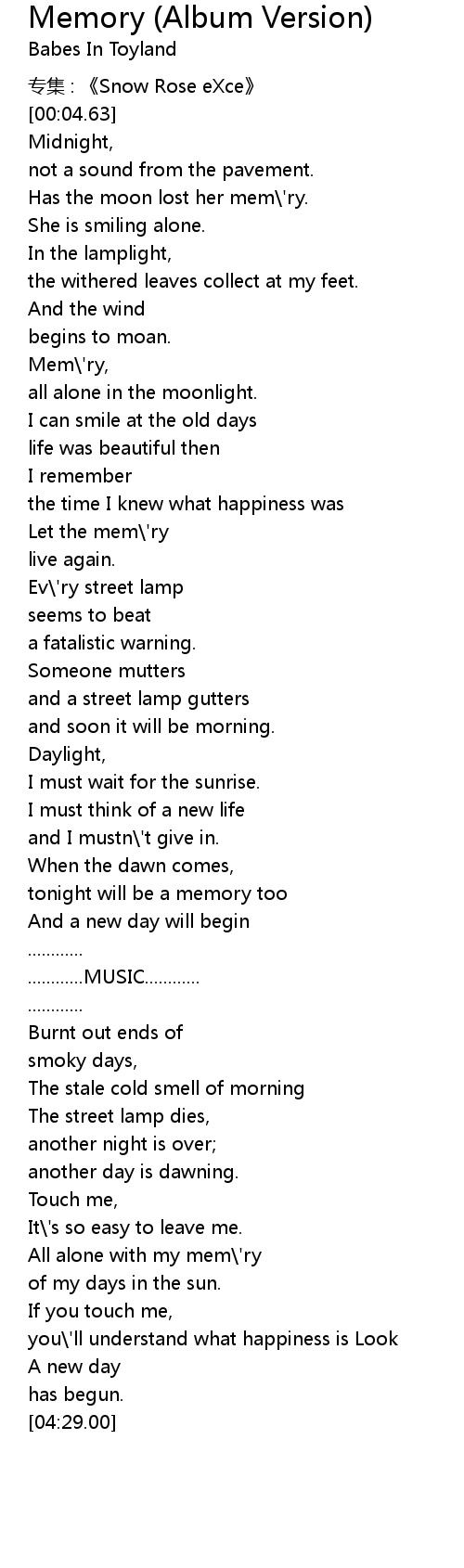 | [00:44.00] | Mem' ry, |