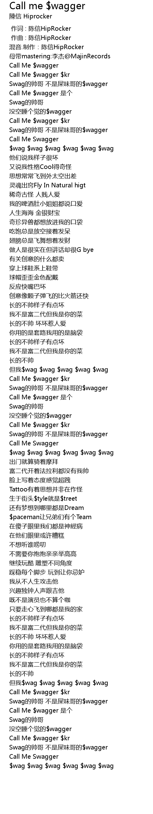 | 歌曲 | Call me $wagger |
