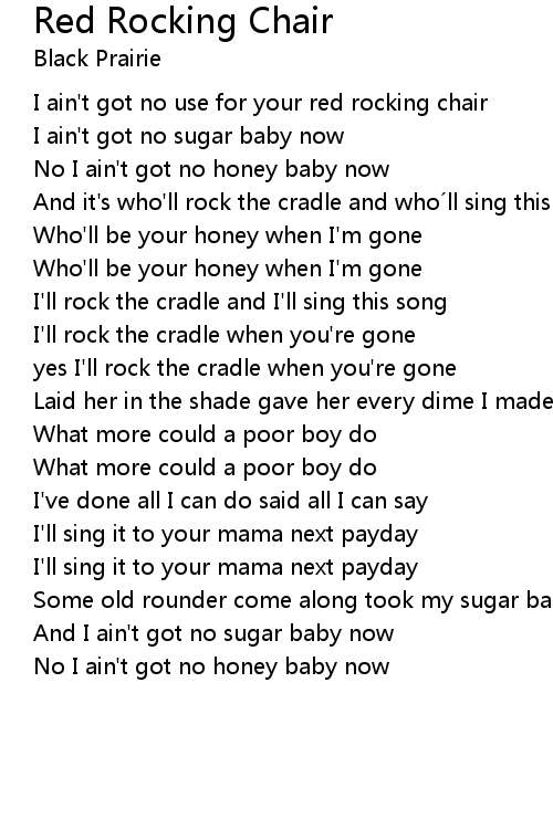| I ain' t got no use for your red rocking chair | |