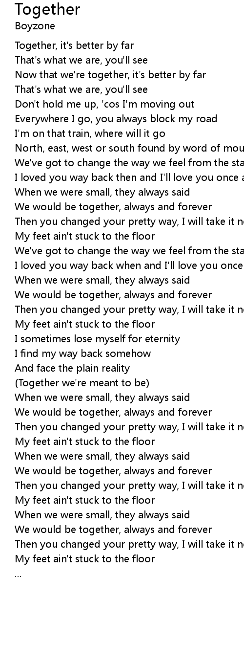 Now that we're together, it's better by far |