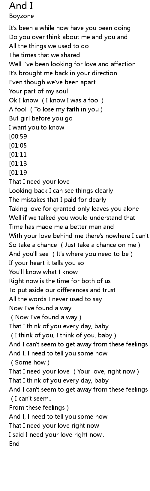 | [01:53] | With your love behind me there's nowhere I can't go |