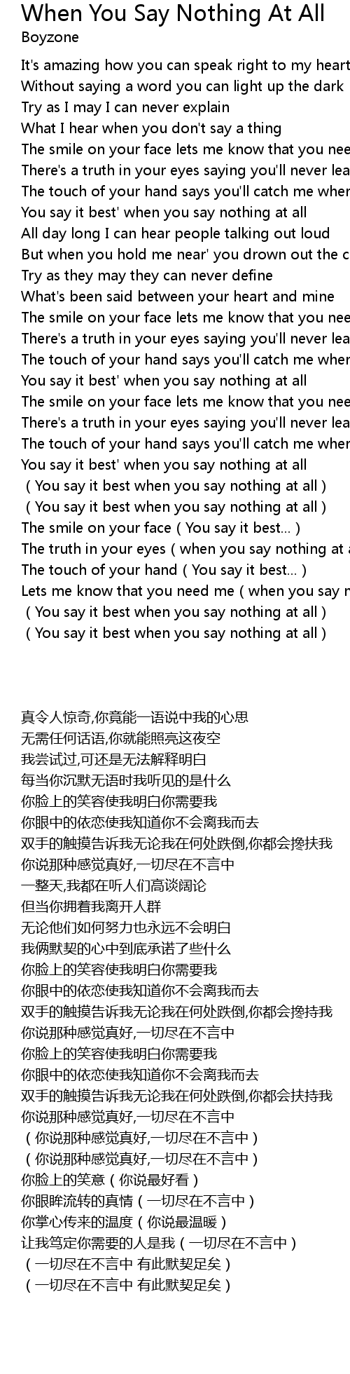 | 歌曲 | When You Say Nothing At All |