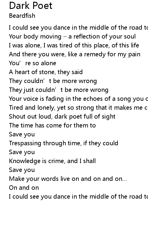 | Shout out loud, dark poet full of sight | |