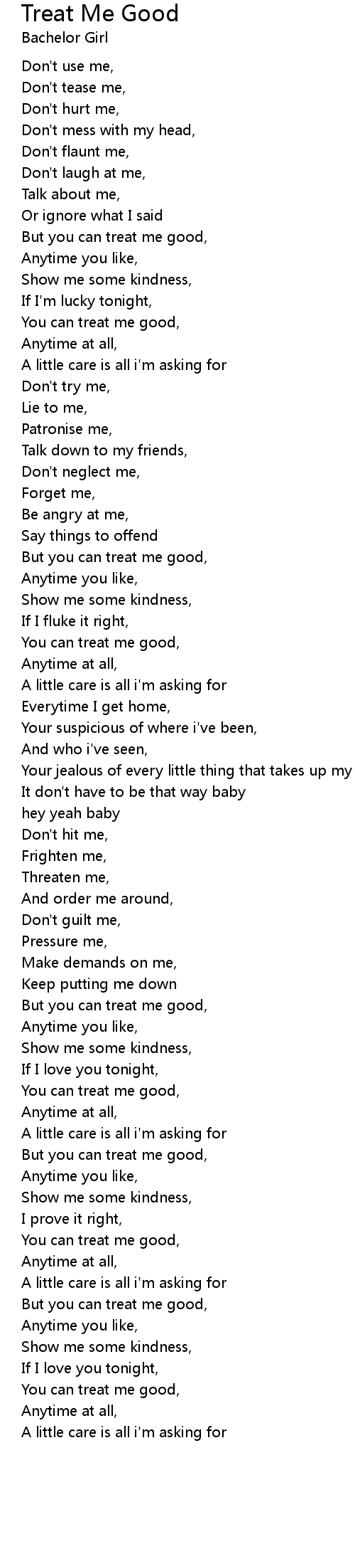 But you can treat me good, |