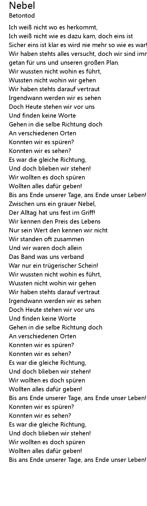 | Bis ans Ende unserer Tage, ans Ende unser Leben! |