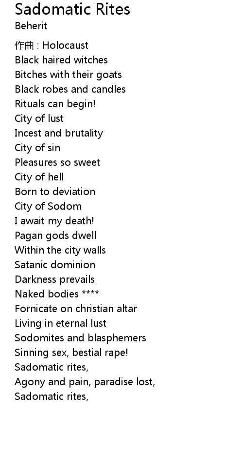 | 歌曲 | Sadomatic Rites |