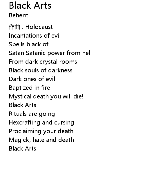 | Incantations of evil | |