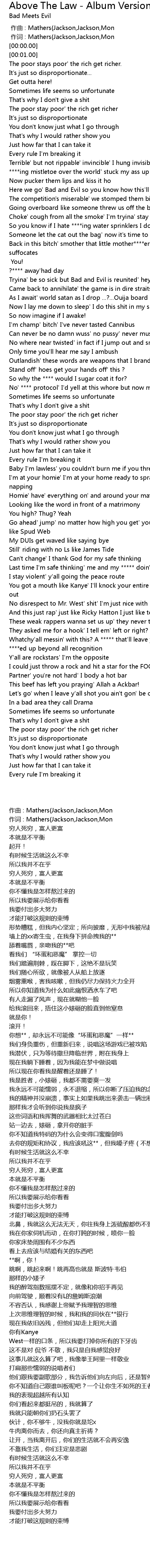 | [02:31.68] | 你有Kanye West一样的口条,所以我要打掉你所有的下牙齿 |