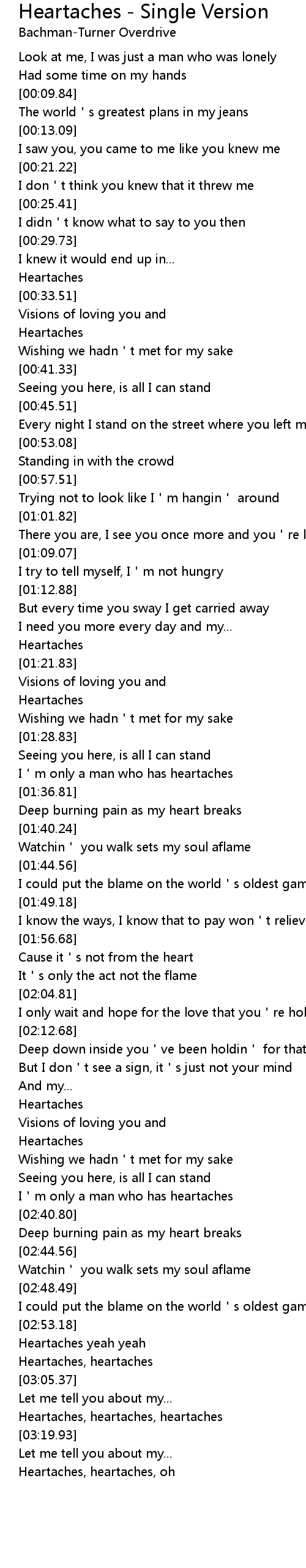 | [03:11.24] | Heartaches, heartaches, heartaches |
