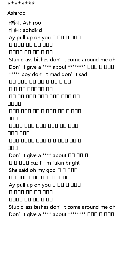 | [00:38.174] | ***** boy don’t mad don’t sad |