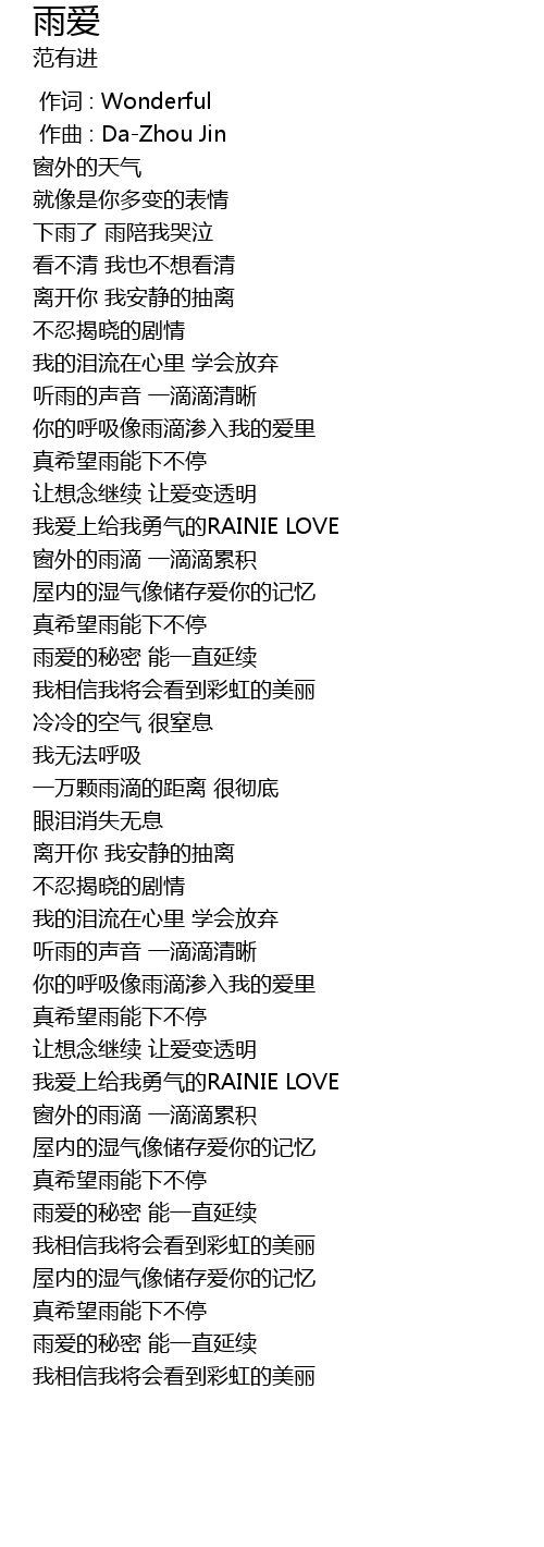 | 歌曲 | 雨爱 |