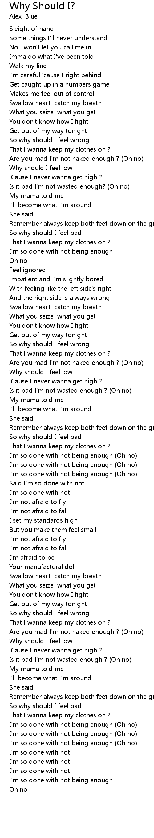 So why should I feel wrong |