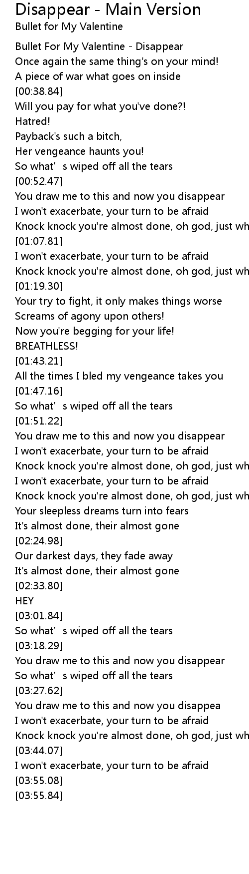 | [00:00.86] | Bullet For My Valentine Disappear |