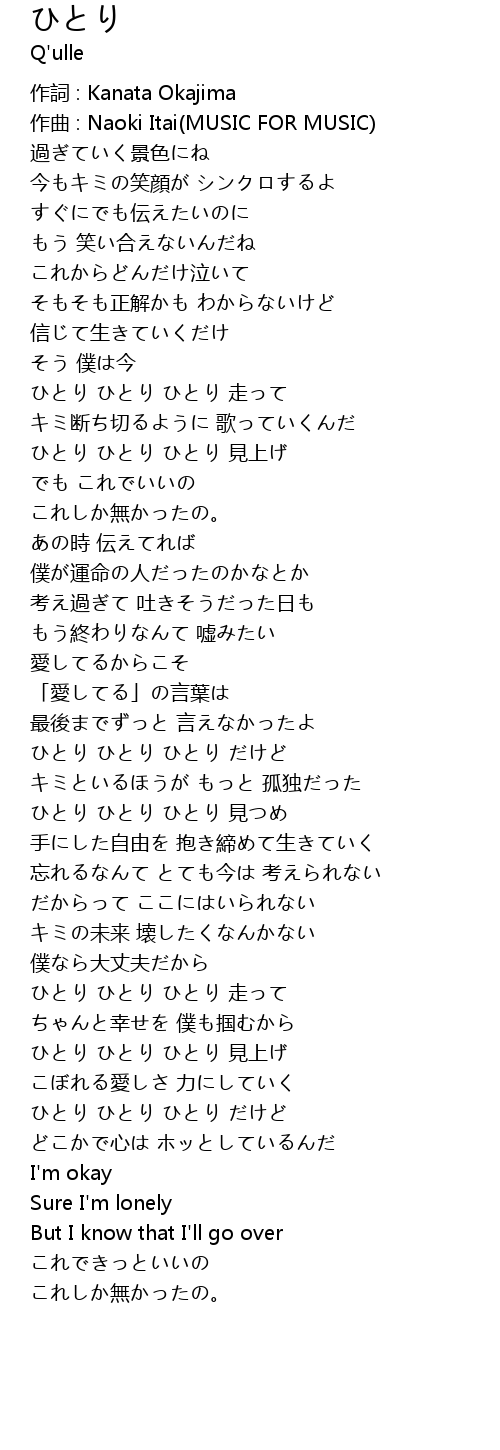| [02:12.45] | ひとり ひとり ひとり だけど |