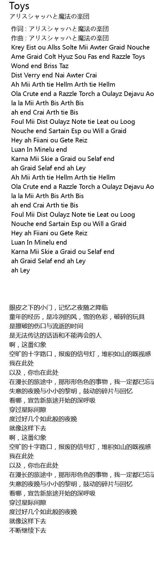 | [00:00.000] | 作词 : アリスシャッハと魔法の楽団 |