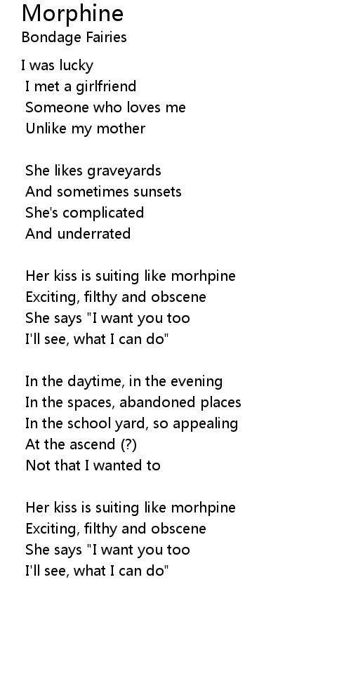 Her kiss is suiting like morhpine |