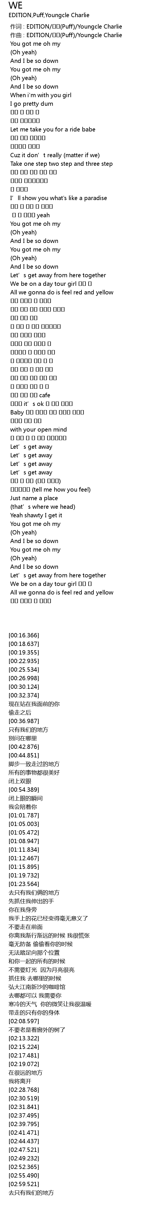 | [00:01.000] | zuo qu : EDITION Puff Youngcle Charlie |