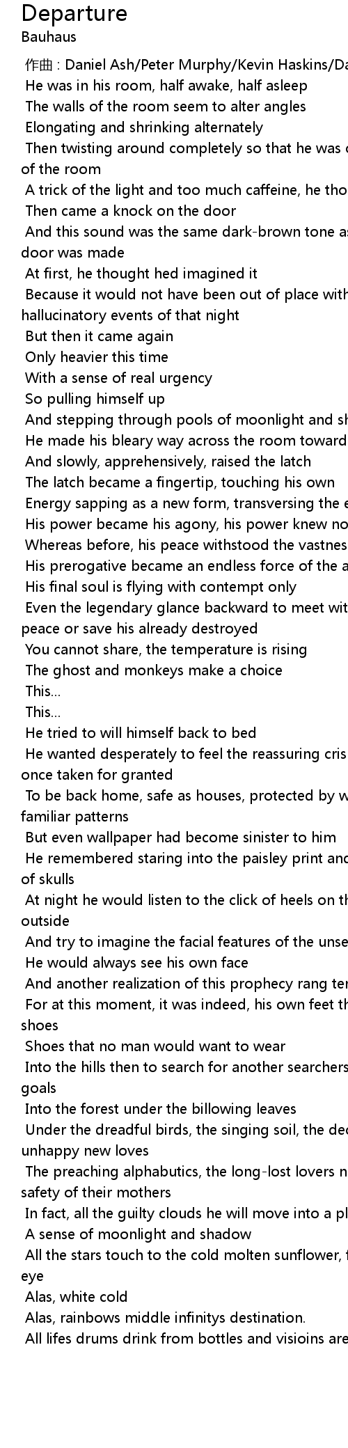 | [00:00.000] | 作曲 : Daniel Ash/Peter Murphy/Kevin Haskins/David J Haskins |