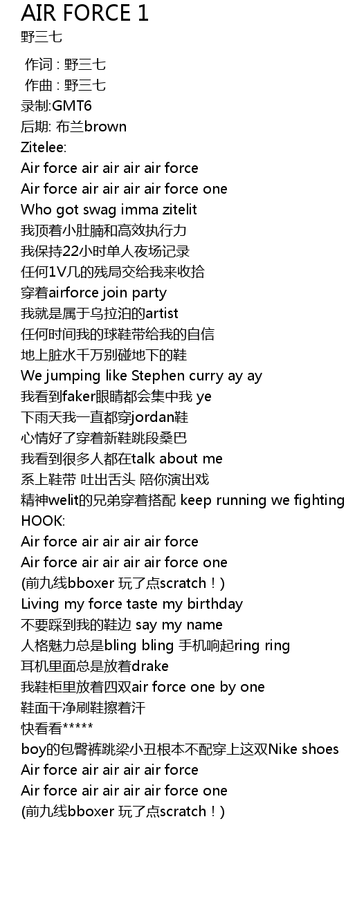 | [02:05.220] | wo xie gui li fang zhe si shuang air force one by one |