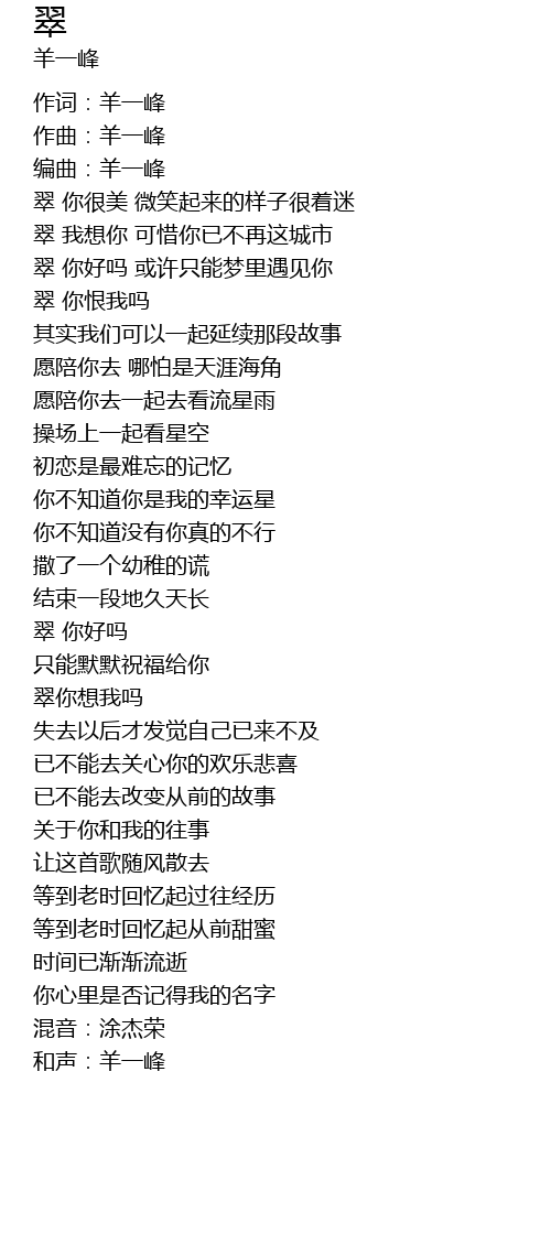 | [00:44.07] | 翠 你好吗 或许只能梦里遇见你 |