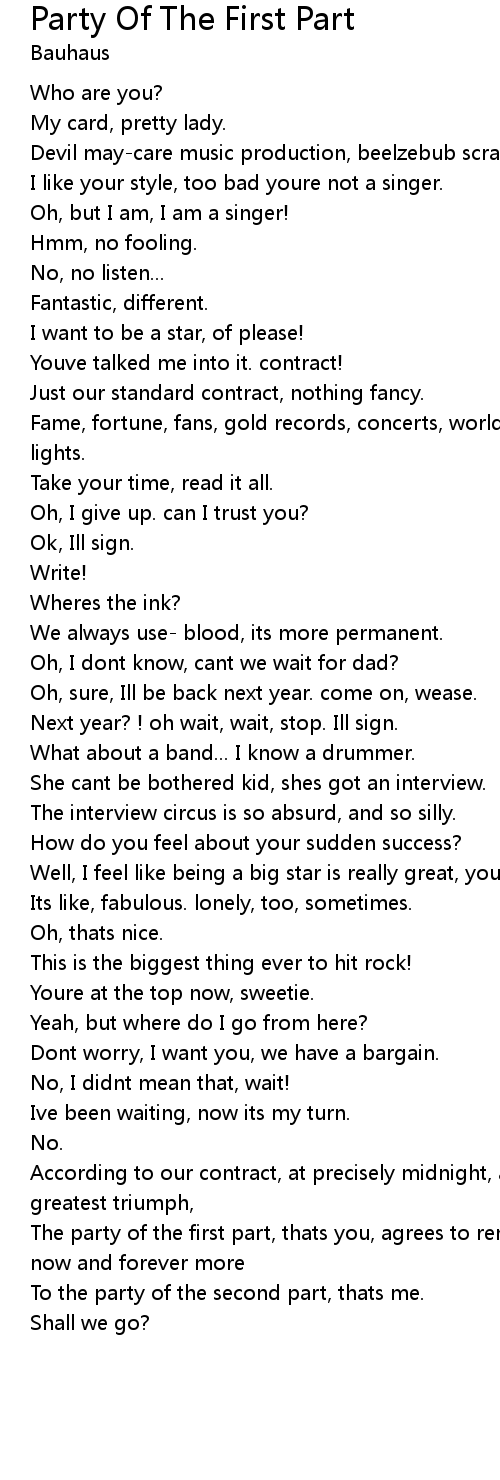 Party Of The First Part 歌词