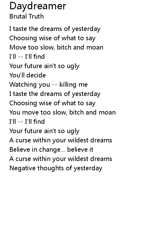 | I taste the dreams of yesterday | |