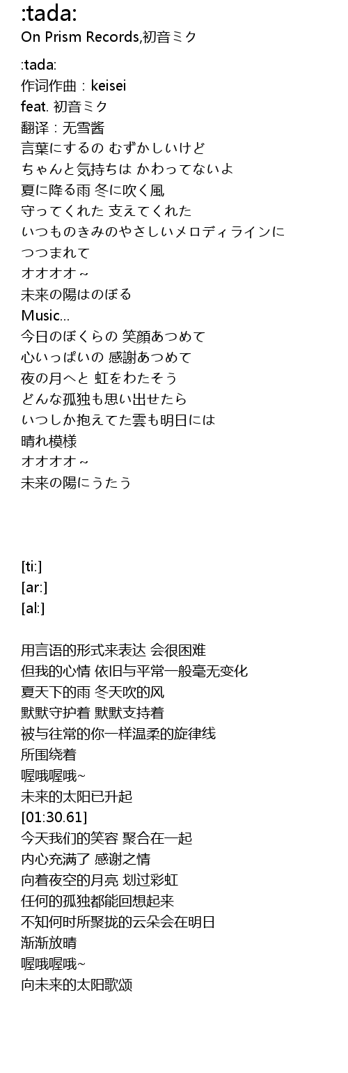 | [00:14.95] | zuo ci zuo qu: keisei |
