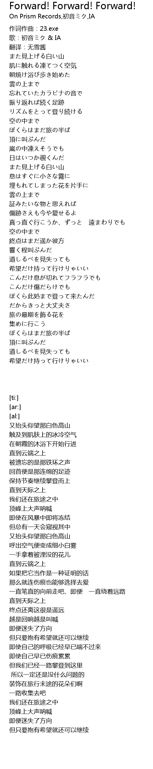 | [00:18.65] | 歌:初音ミク & IA |